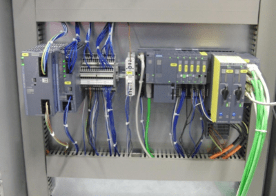 Das Projekt beinhaltet den Ersatz der S5 Steuerungen und das Zusammenführung der Bänder auf eine Steuerung, pneumatische Ansteuerung des Lifts, Stauzonen, entfernbare Bänder, Kommunikation mit Druckkammer, Visualisierung, Sicherheit, Ersatz von 13 Getriebemotoren, sauberes Auftakten und Aufheben mit verschiedenen Bedingungen,.